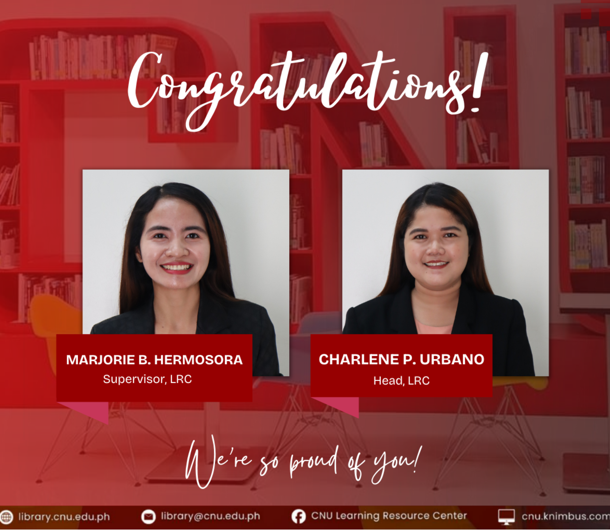 - Congratulations to our newly designated Supervisor and Head of LRC