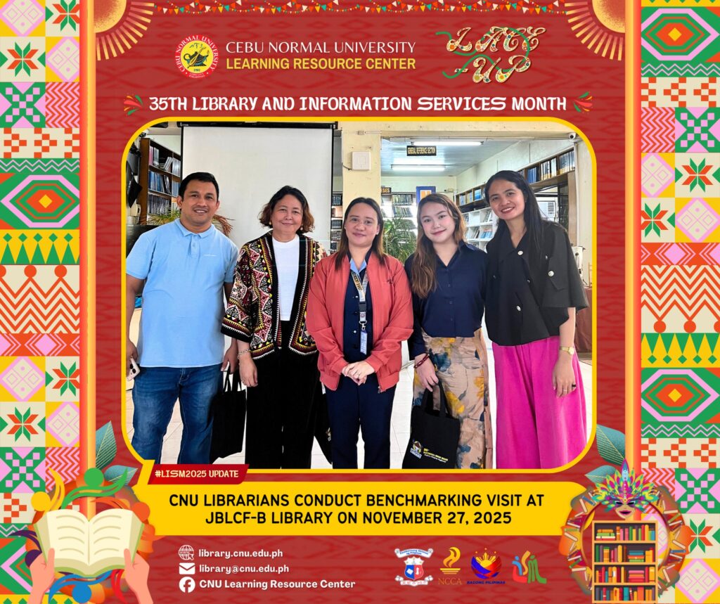 As part of the Library and Information Services Month (LISM) 2025 celebration, the CNU Learning Resource Center, together with the BLIS and MLIS Departments, conducted a courtesy visit at Brgy. Labangon Hall to present plans for a proposed Barangay Reading Center. The team also carried out a needs assessment survey to understand the communityβs literacy priorities.