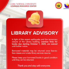 ย ๐๐๐๐ฅ๐๐ฅ๐ฌ ๐๐๐ฉ๐๐ฆ๐ข๐ฅ๐ฌย The Cebu Normal University Learning Resource Center will be ๐ฐ๐น๐ผ๐๐ฒ๐ฑ ๐๐ผ๐ฑ๐ฎ๐, ๐ข๐ฐ๐๐ผ๐ฏ๐ฒ๐ฟ ๐ญ, ๐ฎ๐ฌ๐ฎ๐ฑ, for the evaluation of the facility following the earthquake on September 30, 2025.This measure is taken to ensure the safety and welfare of students, faculty, Continue Reading